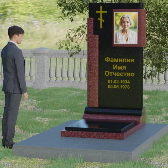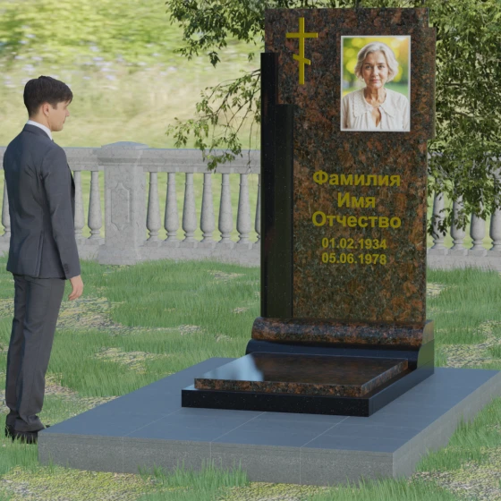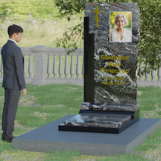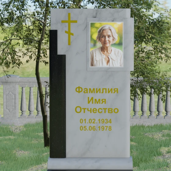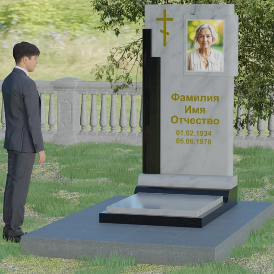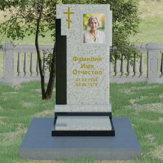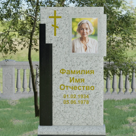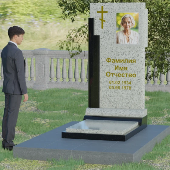 Кому подойдет: Данная модель является универсальной и достойной. Благодаря строгим линиям и возможности выбора цветовых сочетаний, она станет прекрасным выбором для оформления мужского захоронения, подчеркивая твердость характера и статус. В то же время, при использовании более светлых или теплых оттенков камня (например, Мансуровского гранита или мрамора Тассо), памятник приобретает мягкость и изящество, становясь трогательным символом памяти о женщине или дорогом родителе. Это выбор тех, кто ищет баланс между религиозными традициями и современной эстетикой мемориальной архитектуры.