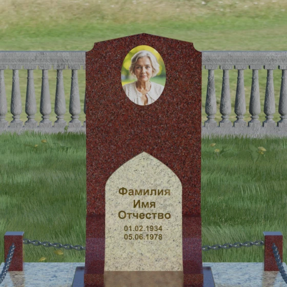 Каждый человек уникален, и мы предоставляем возможность отразить это в материале. Данная модель доступна в 8 цветовых решениях, что позволяет подобрать камень, максимально соответствующий характеру ушедшего. Вы можете выбрать классический гранит Габбро-диабаз для создания атмосферы глубокого покоя, величественный красный Лезниковский гранит, строгий Дымовский или экзотический Блю Перл с его внутренним сиянием. Также доступны варианты в граните Амфиболит, Балтик Грин, белоснежном Мансуровском граните и благородном мраморе Тассо. Использование различных оттенков камня позволяет сделать акцент на деталях: например, замена светлой арки на контрастный красный или зеленый гранит полностью преобразит восприятие мемориала.