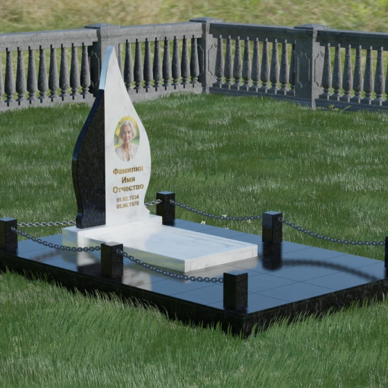 Выбор мемориального изделия — это всегда глубоко личный процесс, стремление выразить в камне ту нежность и уважение, которые мы храним в сердце. Модель 018 воплощает в себе гармонию и завершенность. Величественная стела выполнена в форме изящного, стремящегося ввысь пламени или капли, что символизирует вечный свет души и неугасаемую память. Асимметричная геометрия с мягкими, плавными изгибами лишена острых углов, что подчеркивает идею спокойствия и вечного упокоения. Особое внимание привлекает сочетание двух контрастных видов камня: светлая левая часть стелы с её благородной зернистой фактурой мягко огибает темную зеркальную сердцевину. Этот контраст создает визуальный объем и глубину, подчеркивая уникальность композиции и делая её заметной на фоне традиционных строгих форм.