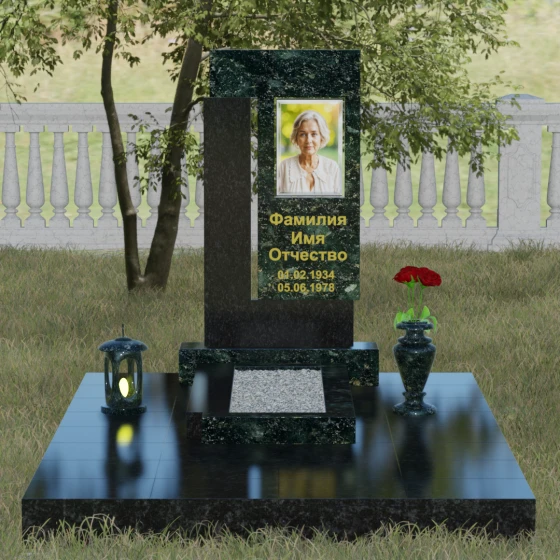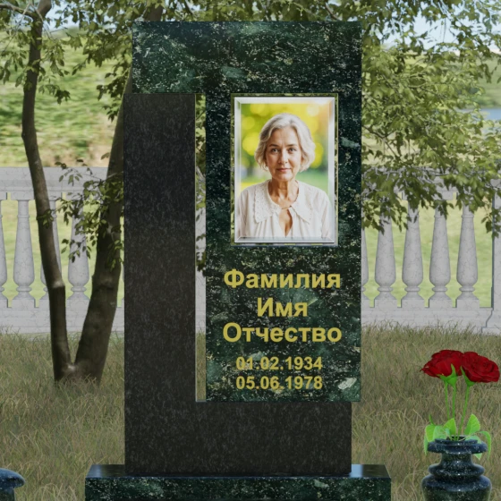 Архитектурное решение стелы предусматривает выделенную зону для портрета, которая может быть оформлена как в виде классической фотокерамики в овальной нише, так и методом художественной лазерной гравировки. Золоченая или вырубленная в камне надпись располагается на контрастном фоне, что обеспечивает отличную читаемость даже на расстоянии. Мы предлагаем этот проект в 8 уникальных цветовых исполнениях, что позволяет наделить мемориал индивидуальным характером. Вы можете выбрать глубокий черный гранит Габбро-диабаз, благородный серо-белый Мансуровский гранит, насыщенный красный Лезниковский, строгий Дымовский, изысканный Блю Перл с его синими искрами, текстурный Амфиболит, зеленый Балтик Грин или белоснежный мрамор Тассо.
