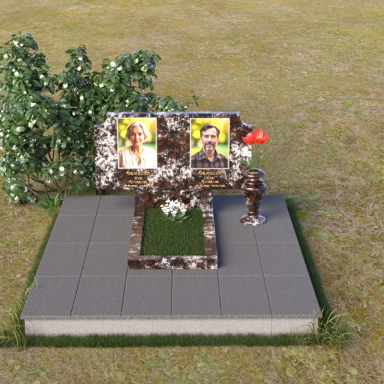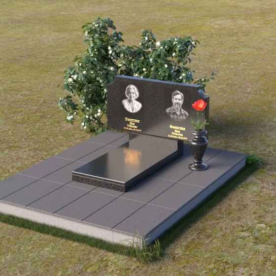 Оформление: Для этой формы стелы идеально подойдет гравировка портретов в овальной или прямоугольной рамке. Имена и даты жизни можно расположить под портретами, используя золотой или серебряный шрифт. Дополнительно можно добавить эпитафию, выражающую любовь и скорбь. Не перегружайте композицию лишними деталями – лаконичность и сдержанность подчеркнут достоинство и элегантность памятника.