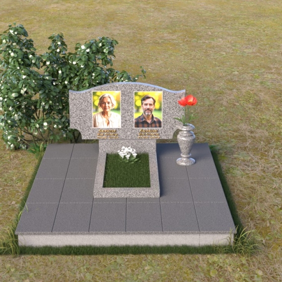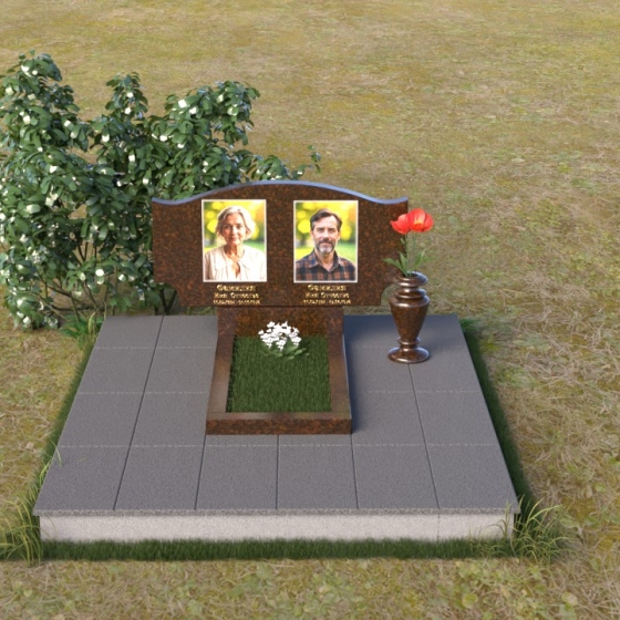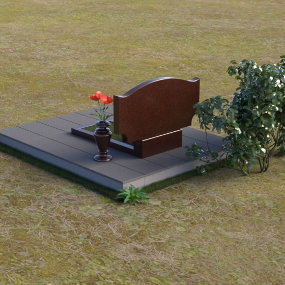 Этот гранитный монумент привлекает внимание своей плавной, обтекаемой формой. Верхняя часть надгробного сооружения представляет собой дугу с легким изгибом, напоминающим колыбель или волну, бережно укрывающую покой. Боковые грани скруглены, что придает памятнику мягкость и умиротворенность. Фаска, аккуратно снятая по периметру, подчеркивает четкость линий и добавляет изделию изысканности. Нижняя часть монумента выполнена в форме прямоугольника, создавая устойчивое основание и визуальный баланс. Дополнительная горизонтальная плита, расположенная на основании, добавляет композиции завершенность и предоставляет место для нанесения эпитафий или размещения цветов.
