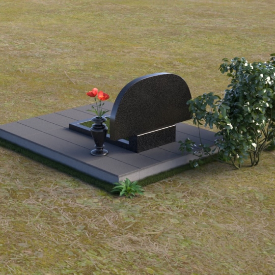 Этот ритуальное изделие – воплощение сдержанной элегантности и долговечной памяти. Плавные линии стелы, устремленные вверх, символизируют вознесение души. Верхняя часть памятника имеет форму мягкой дуги, что придает композиции завершенность и визуальную гармонию. Зеркальная полировка черного гранита создает эффект бездонной глубины, отражая свет и окружающий мир, словно запечатлевая мгновения жизни. Особое внимание привлекает подставка, выполненная в едином стиле со стелой, образуя целостный и законченный ансамбль. Небольшая тумба, расположенная перед стелой, предоставляет место для цветов и свечей, позволяя выразить свою любовь и скорбь.