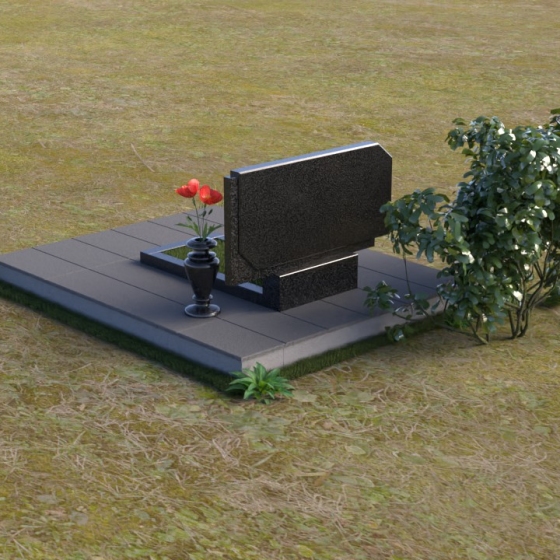 Конструкция памятника состоит из нескольких элементов, гармонично сочетающихся друг с другом. Основание памятника выполнено в виде прямоугольной плиты, облицованной серыми гранитными плитами, что обеспечивает устойчивость и надежность всей конструкции. На основании установлена тумба, также выполненная из черного полированного гранита. На тумбе располагается горизонтальная плита, создающая дополнительное пространство для цветов или памятных вещей. Завершает композицию ваза из черного гранита, расположенная рядом со стелой, добавляя завершенность и элегантность всему ансамблю.