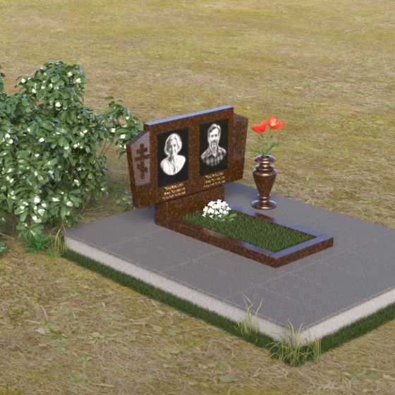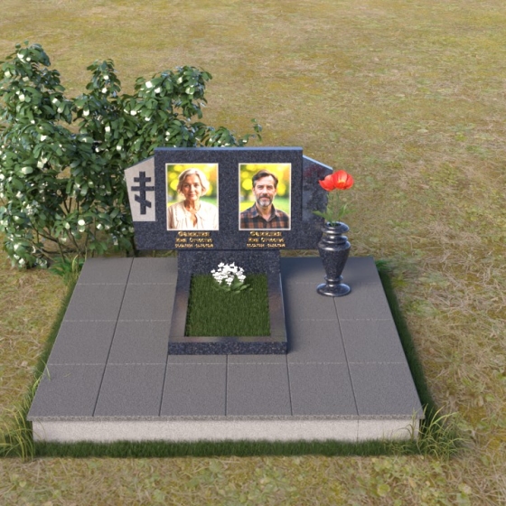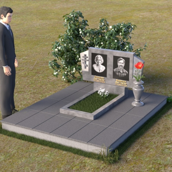Оформление: Для этой формы надгробия идеально подойдет гравировка портретов в строгом, классическом стиле. Четкие линии и реалистичность изображения позволят сохранить в памяти облик усопших. Имена, отчества и даты жизни, выполненные элегантным шрифтом, дополнят композицию и придадут ей завершенный вид. Рекомендуется использовать шрифт с засечками, чтобы подчеркнуть торжественность момента.