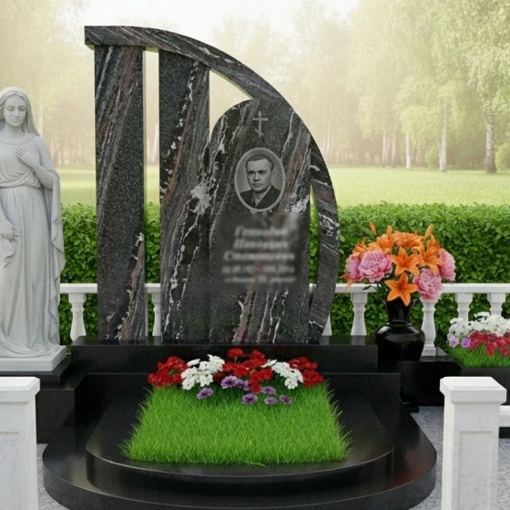 Мемориальная композиция артикула ПН 104 — это не просто надгробие, а истинный шедевр камнерезного искусства, призванный увековечить память о близком человеке с достоинством и изяществом. Созданный с безупречным вниманием к деталям, этот комплекс воплощает в себе вечную красоту и несокрушимую прочность гранита, гарантируя сохранение своего первозданного вида на протяжении многих столетий. Каждая грань, каждый изгиб здесь пронизаны глубоким смыслом, отражая не только скорбь, но и светлую память, становясь безмолвным свидетелем непреходящей любви и уважения.