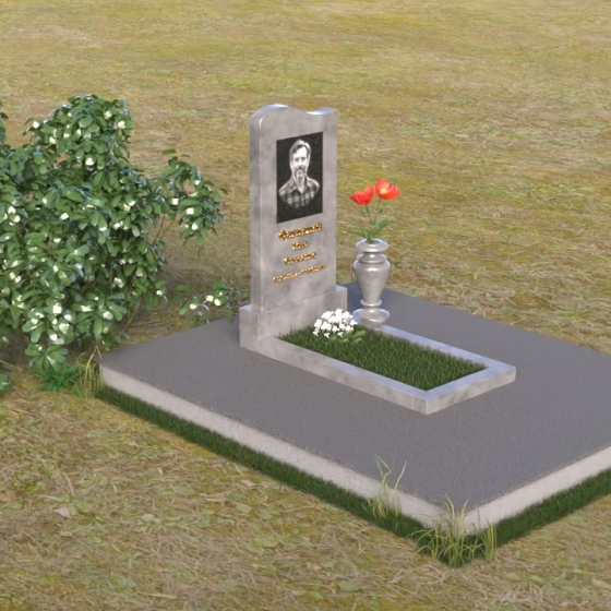 Представленная мемориальная композиция отличается лаконичностью и элегантностью. Ее строгие формы, смягченные плавными изгибами, символизируют как жизненный путь, так и обретение покоя. Верхняя часть стелы имеет мягкий, едва заметный изгиб, словно склоняясь в знак уважения. Грани стелы деликатно обработаны, что придает ей завершенный и благородный вид. На лицевой стороне выгравированы портрет усопшего и памятные надписи, выполненные с особой тщательностью.