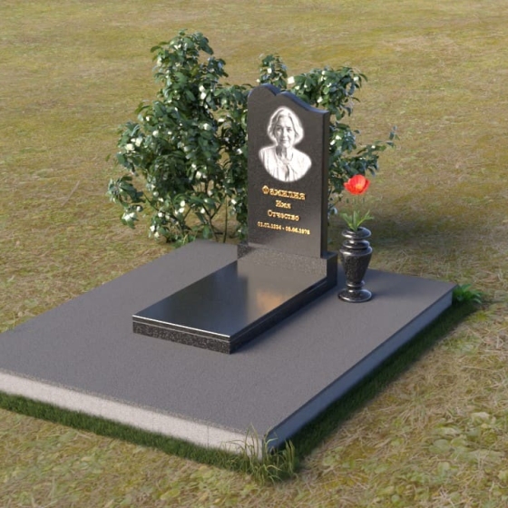 Памятник ПВ 017 – это воплощение сдержанной элегантности и глубокого уважения. Величественная стела, выполненная в форме плавной арки, словно устремляется в небеса, символизируя духовное возвышение. Верхняя часть стелы деликатно скруглена, смягчая строгие линии камня и придавая облику памятника теплоту и человечность. Полированная до зеркального блеска поверхность черного гранита контрастирует с матовым изображением лица и надписями, создавая завораживающий эффект глубины и объема. Этот контраст акцентирует внимание на личности ушедшего, его жизненном пути и неповторимом образе.