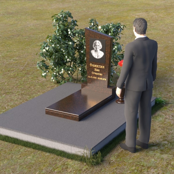 Геометрия модели продумана до мелочей. От основания, служащего надежным фундаментом, до изящно скошенного верха стелы – каждый элемент работает на создание целостного и гармоничного образа. Массивное основание плавно переходит в горизонтальную плиту, которая является своеобразным пьедесталом для вертикальной стелы. Скошенный верх стелы не только придает ей оригинальный вид, но и создает ощущение легкости и устремленности ввысь. Все элементы композиции объединены общей идеей – создать прочное и долговечное сооружение, которое будет достойным памятником ушедшему человеку.