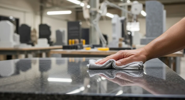 Мы несем личную ответственность за каждый этап: от выбора безупречной гранитной плиты на карьере до финальной проверки гравировки перед отправкой вам. Мы сознательно объединяем отцовские традиции ручного труда и внимания к деталям с точностью современного итальянского и немецкого оборудования.