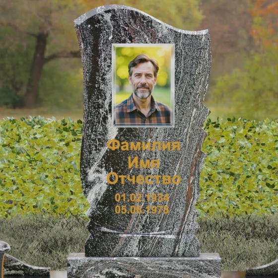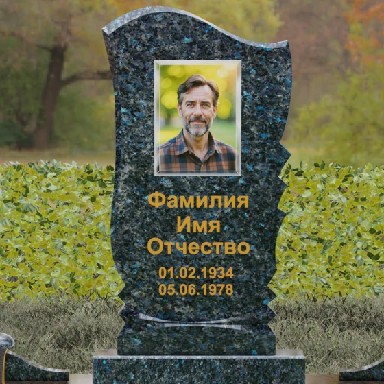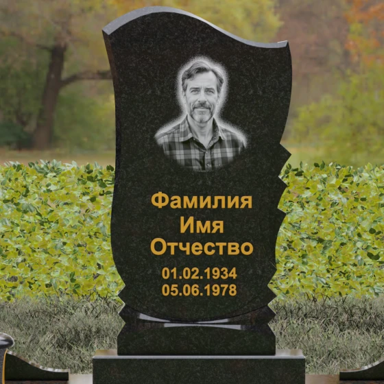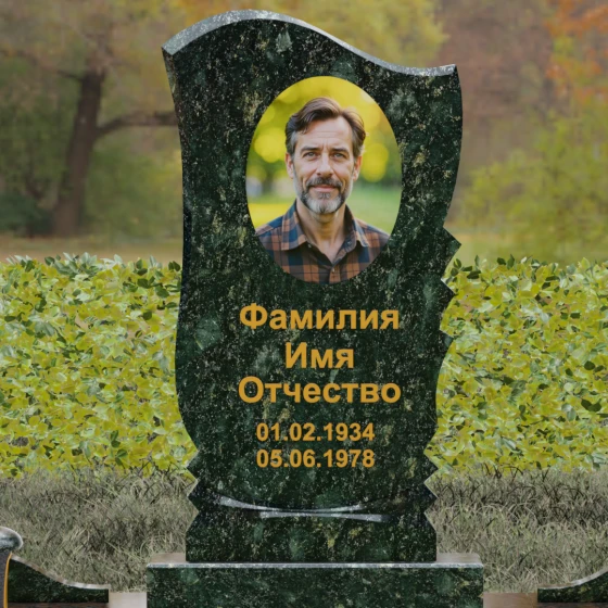 Оформление: Плавные линии стелы идеально подходят для размещения классического портрета. Мы рекомендуем дополнить композицию глубокой гравировкой ФИО с последующим покрытием сусальным золотом или "Антиком". Это подчеркнет благородство материала и сделает надписи читаемыми при любом освещении. Зеркальная полировка лицевой стороны станет идеальным фоном для художественных работ, подчеркивая их четкость и долговечность.