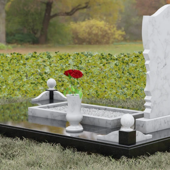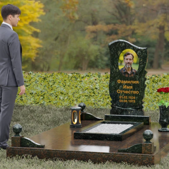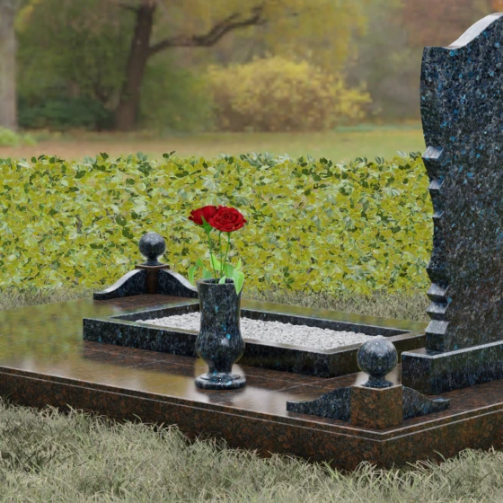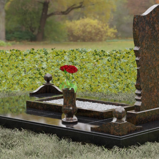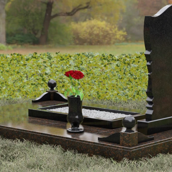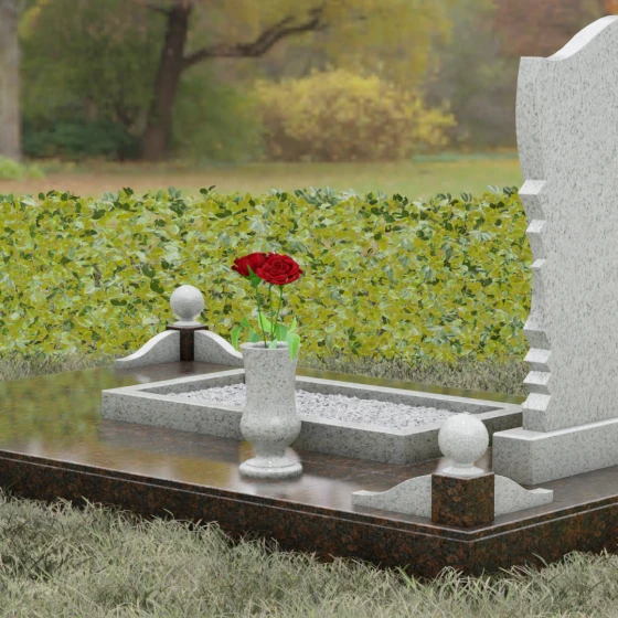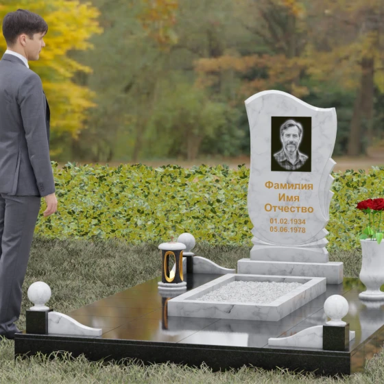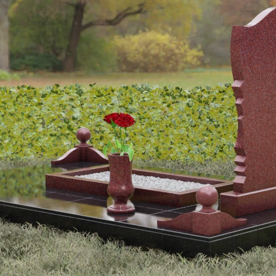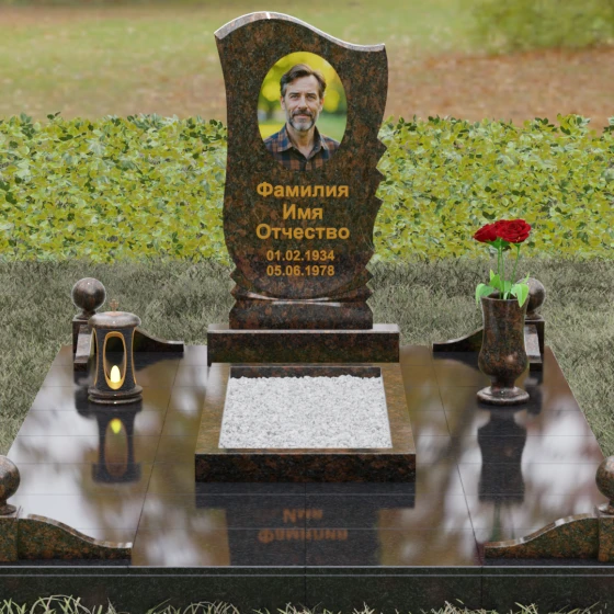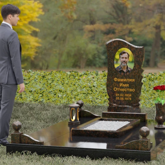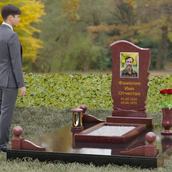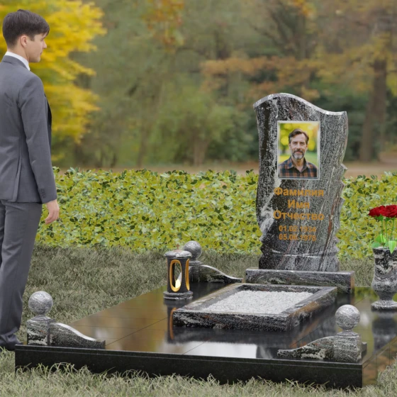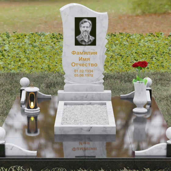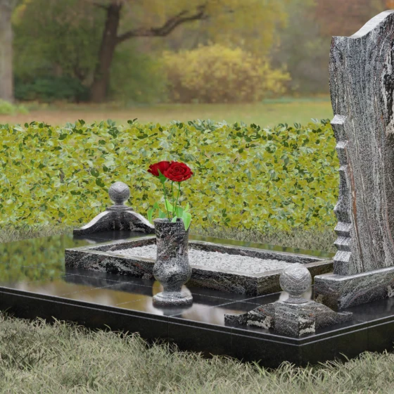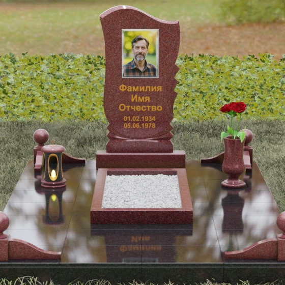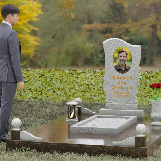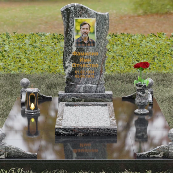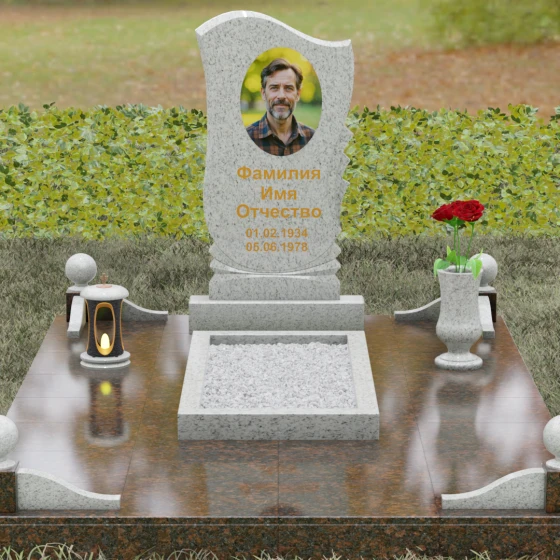 • Аксессуары: В комплект включены изящная точеная ваза для цветов и каменная лампада, выполненные в едином стиле со стелой.