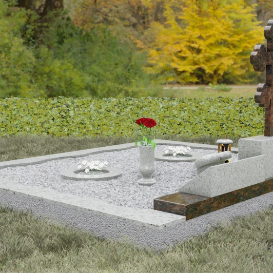 Данное надгробие спроектировано как полноценная архитектурная форма для семейного захоронения. Оно включает в себя не только стелы, но и комплексное благоустройство участка, обеспечивающее надежность и эстетичный вид на десятилетия: