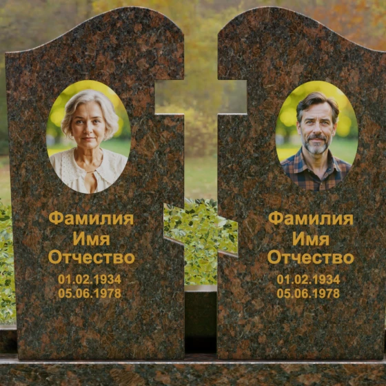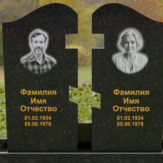 Оформление: Для данной модели мы рекомендуем использовать контрастную гравировку. Портреты в виде медальонов или художественной гравировки идеально вписываются в верхнюю часть обелисков. Текст (ФИО и даты), выполненный глубокой рубкой с последующим покрытием сусальным золотом, будет великолепно смотреться на темных сортах гранита, подчеркивая торжественность момента. На светлых камнях, таких как Мансуровский или мрамор Тассо, лучше отдать предпочтение глубокому гравированию с контрастным заполнением букв.