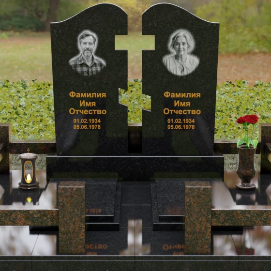 Выбор материала — это фундамент долговечности памяти. Данный гранитный монумент доступен в восьми эксклюзивных вариантах исполнения. Мы предлагаем семь видов природного гранита (глубокий черный Габбро-диабаз, лесной Балтик грин, искрящийся Блю Перл, текстурный Амфиболит, благородный коричневый Дымовский, насыщенный красный Лезниковский или светлый Мансуровский) и белоснежный мрамор Тассо. Такое разнообразие палитры позволяет подобрать камень, который максимально точно отразит характер и жизненный путь усопших: от строгой классики до экспрессивных природных рисунков.