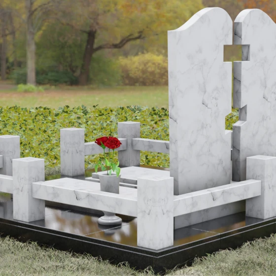 - Комплектация: Центральные обелиски, подставка, две закрытые надгробные плиты, столбики, цоколь, аксессуары.
