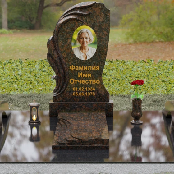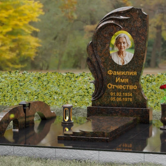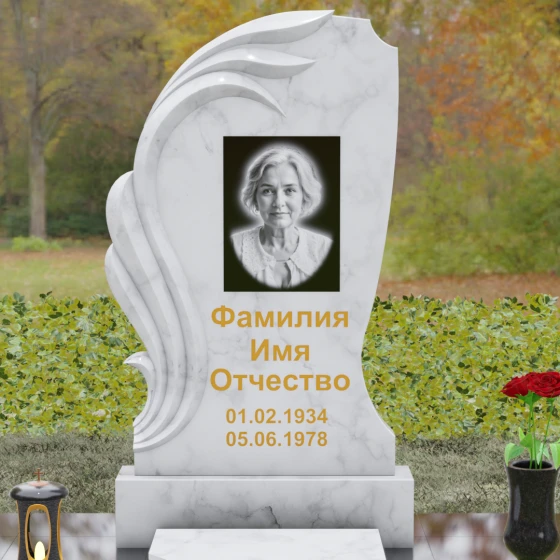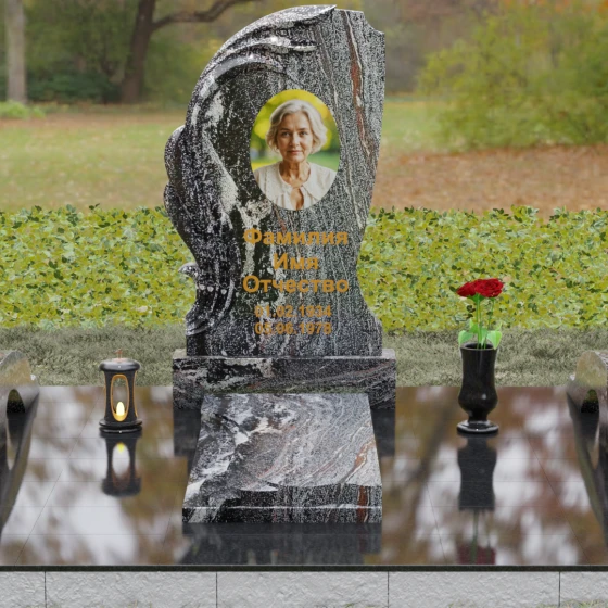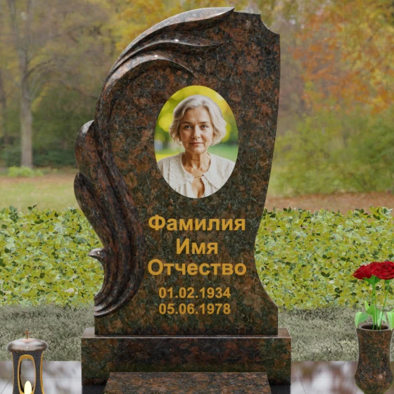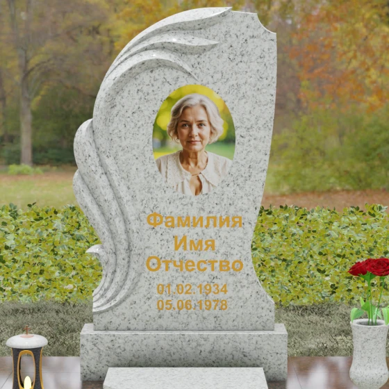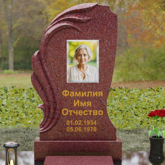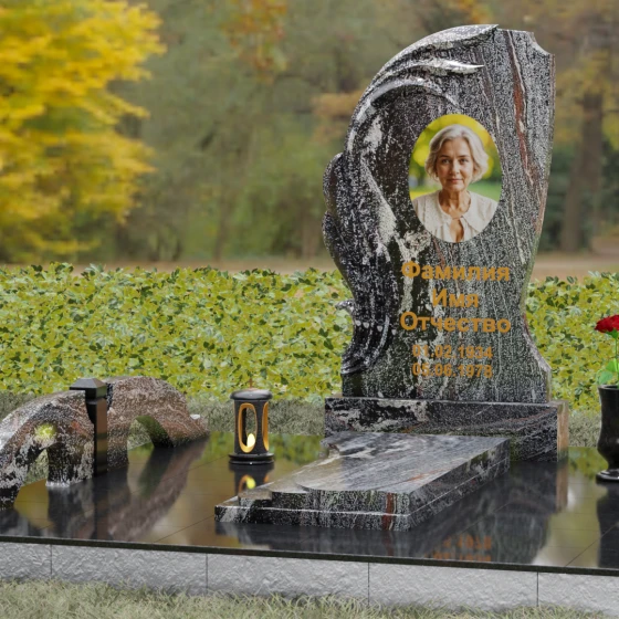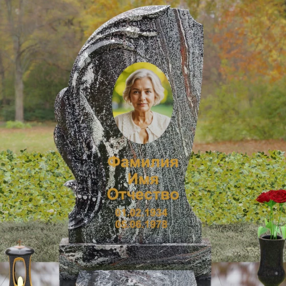 Асимметрия формы подчеркивает уникальность жизненного пути, а отсутствие острых углов говорит о гармонии и примирении. Этот памятник станет идеальным воплощением любви к матери, жене или дочери, объединяя в себе стойкость природного материала и нежность художественного замысла. Гравировка или фотокерамика гармонично располагаются в центре композиции, обрамленные «крылом», которое словно оберегает покой дорогого человека.