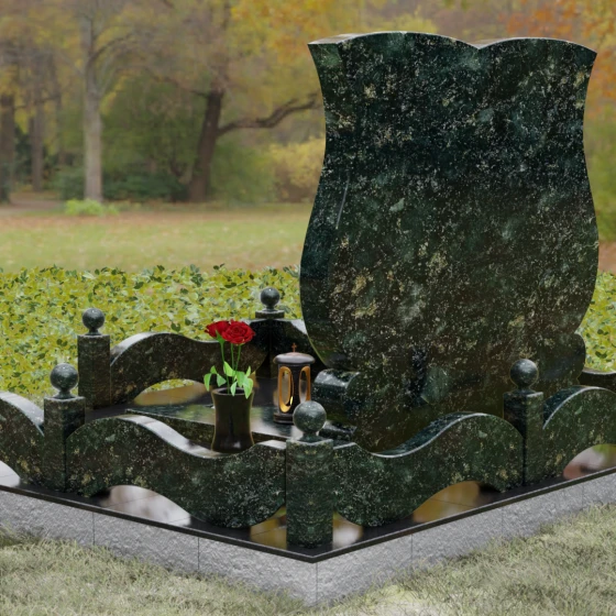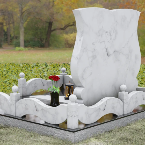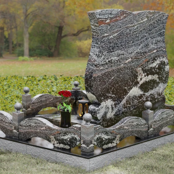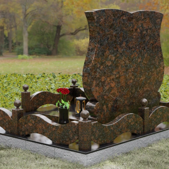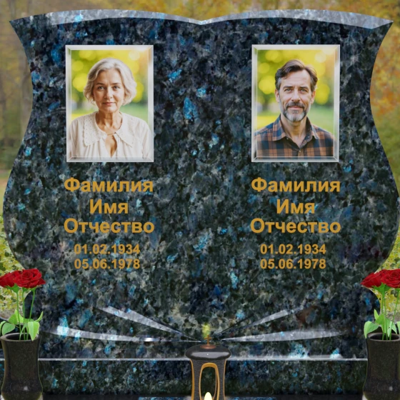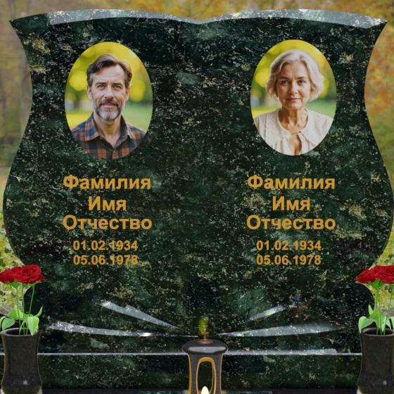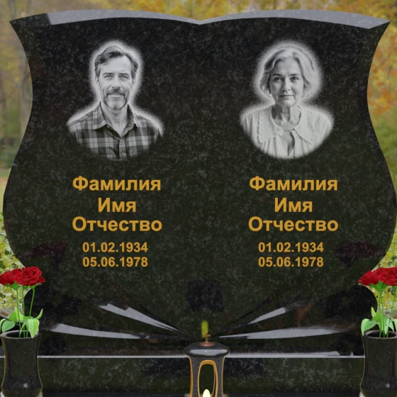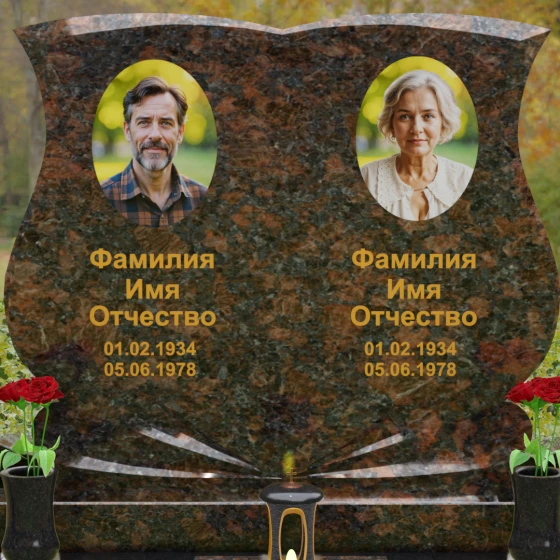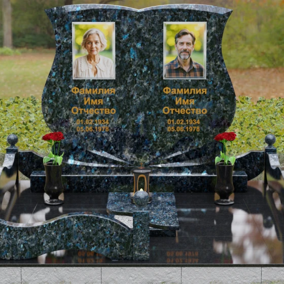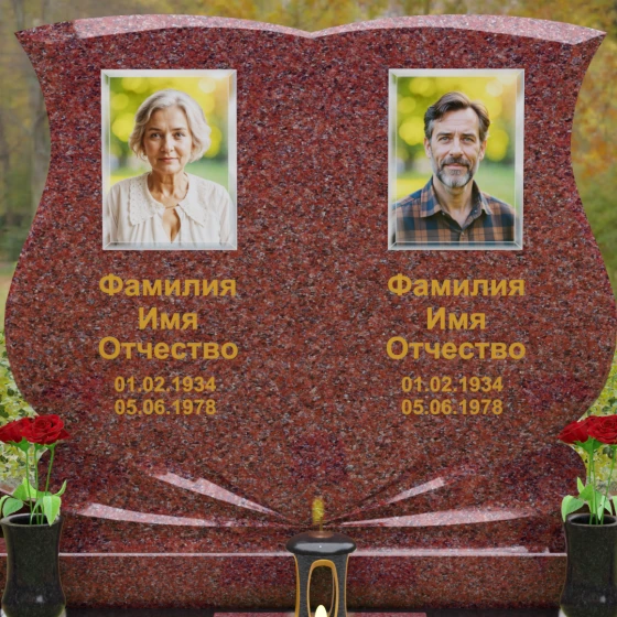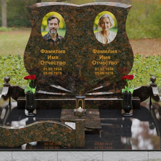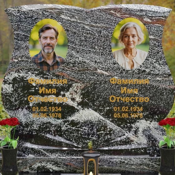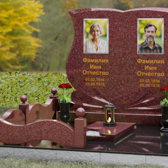 Кому подойдет: Эта модель разработана специально для парных захоронений, становясь достойным символом неразрывной связи. Она идеально подходит для увековечивания памяти родителей, супружеских пар или близких родственников. Возможность исполнения в светлых тонах (Мансуровский гранит или мрамор Тассо) придаст мемориалу возвышенную легкость, тогда как темные виды гранита подчеркнут статусность и строгую торжественность места упокоения. Благодаря своей сложной геометрии и обилию декоративных элементов, комплекс выглядит дорого и самодостаточно в любых условиях освещения.