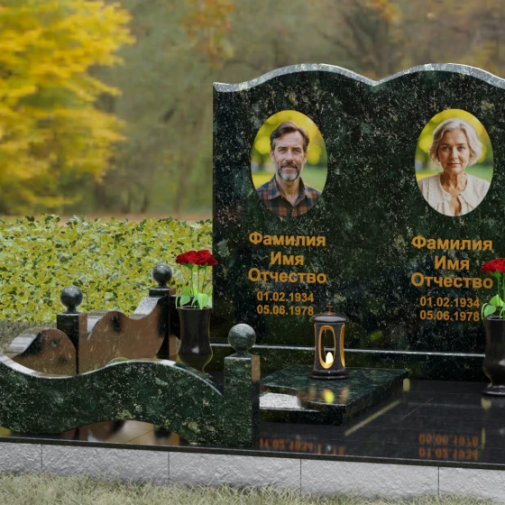 Для создания этого мемориала мы используем только высокоплотные породы камня, отличающиеся минимальным водопоглощением и абсолютной морозостойкостью. Модель доступна в восьми эксклюзивных вариантах исполнения. Вы можете выбрать глубокий черный гранит Габбро-диабаз для классической строгости, благородный гранит Балтик грин с его лесными переливами, изысканный гранит Блю Перл с мерцающими кристаллами или теплый гранит Дымовский. Также доступны гранит амфиболит, насыщенно-красный гранит Лезниковский, белоснежный гранит Мансуровский и безупречный мрамор Тассо. Широкая палитра позволяет подобрать материал, максимально точно отражающий характер и статус усопших.