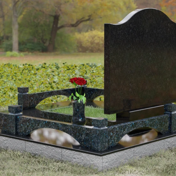 Данная модель — это торжество фактуры. Зеркальная полировка лицевой стороны доведена до совершенства: в ней, как в темном зеркале, отражается мир, соединяя земное и небесное. Контраст между идеально гладкой поверхностью и сложной геометрией резных краев создает визуальный ритм, характерный для элитных мемориальных комплексов. Чтобы подчеркнуть индивидуальность ушедшего, мы предлагаем выполнение этой модели в 8 цветовых решениях. Вы можете выбрать благородный черный гранит Габбро-диабаз, глубокий гранит Блю Перл с искрами лабрадорита, величественный красный гранит Лезниковский или строгий коричневый гранит Дымовский. Также доступны экзотический гранит Балтик грин, контрастный амфиболит, светлый гранит Мансуровский и девственно чистый мрамор Тассо. Каждая порода камня обладает своим характером: от суровой сдержанности до нежной одухотворенности.