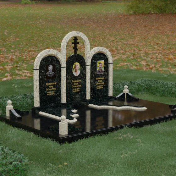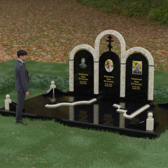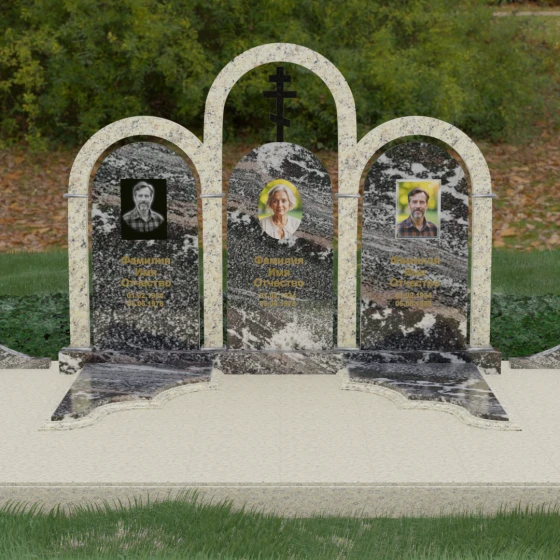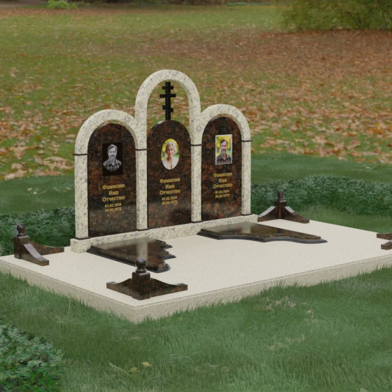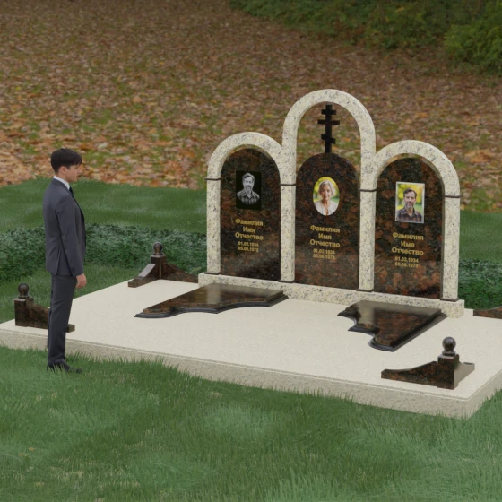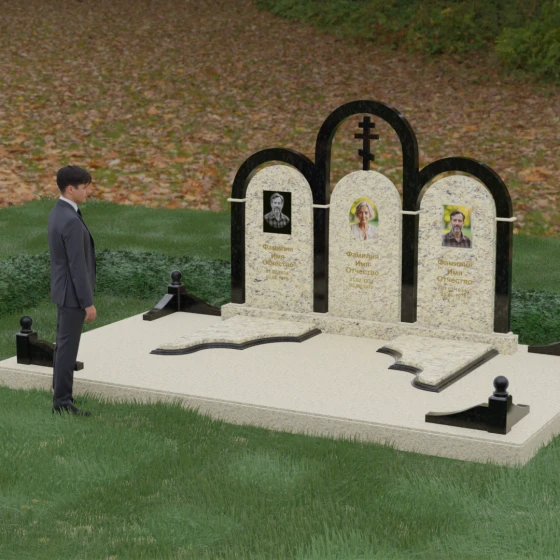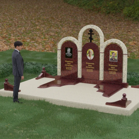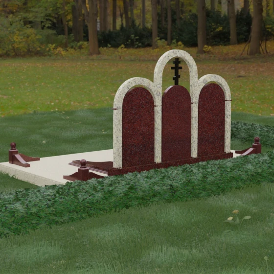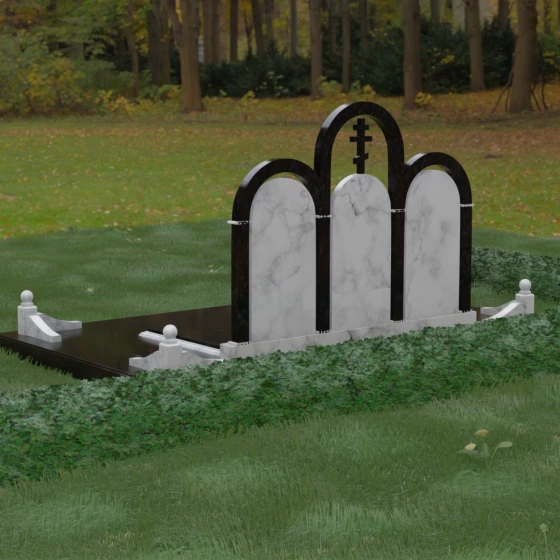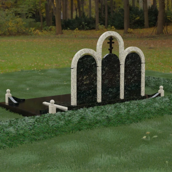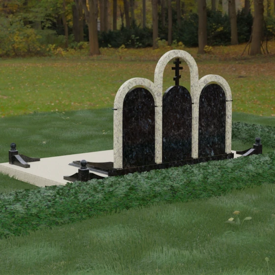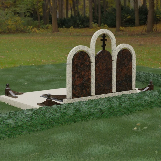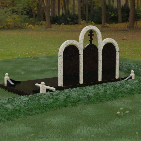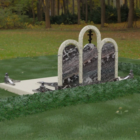 Кому подойдет: Данная модель является идеальным выбором для семейного захоронения на двоих или троих человек. Благодаря своей масштабности и классическим формам, она станет достойным воплощением памяти о родителях или супругах. Композиция одинаково хорошо подойдет как для тех, кто чтит православные традиции (благодаря центральному кресту), так и для тех, кто ищет эстетически совершенное и надежное решение для благоустройства родового участка, превращая его в место истинного преклонения перед историей семьи.