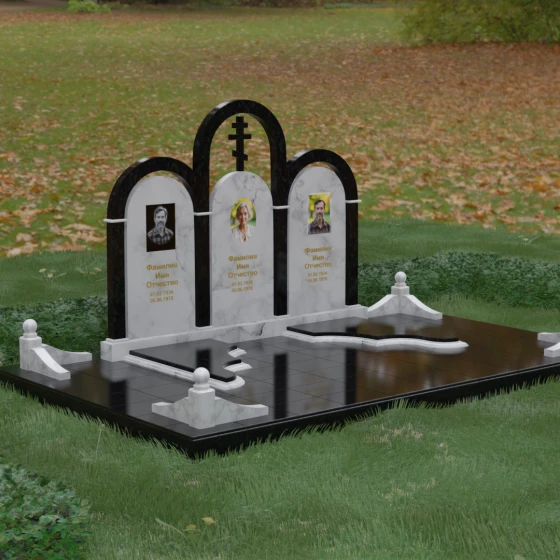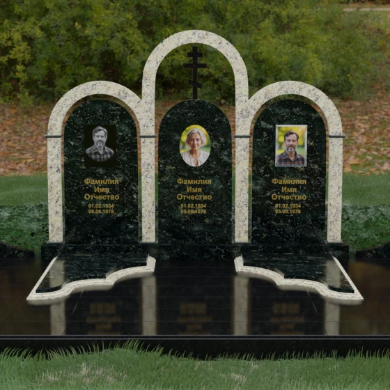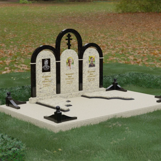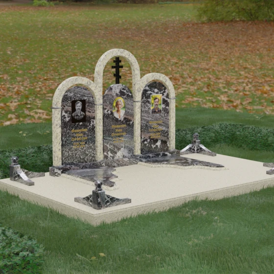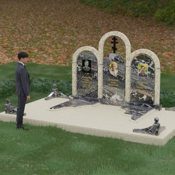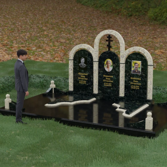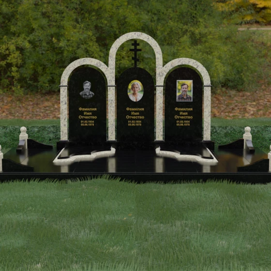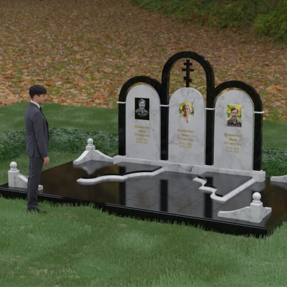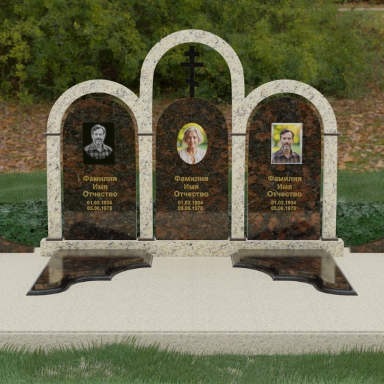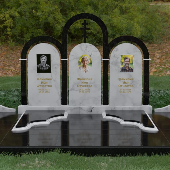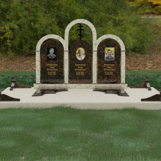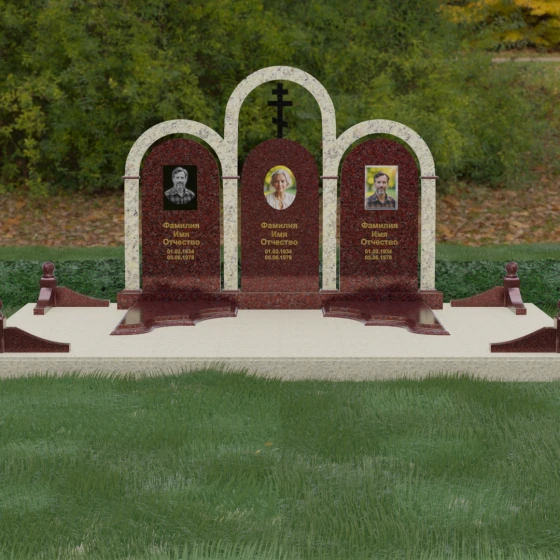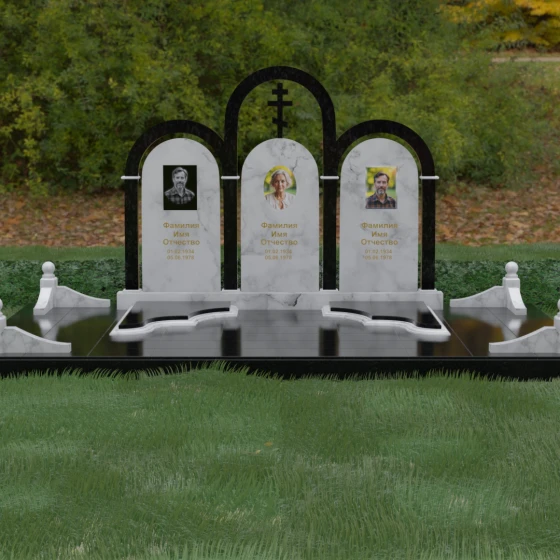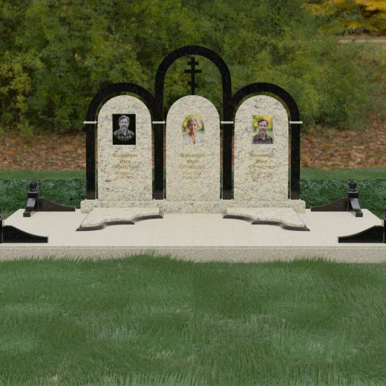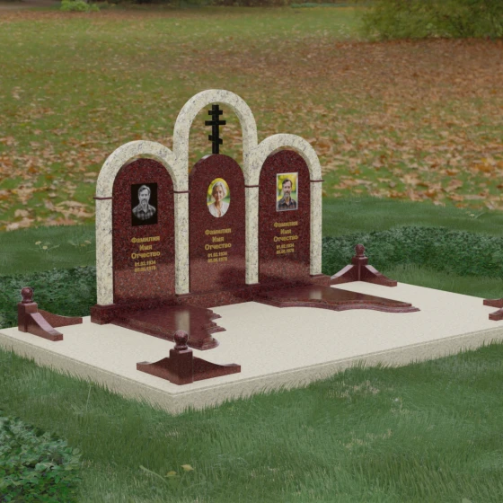 Кому подойдет: Данная модель является идеальным выбором для семейного захоронения на двоих или троих человек. Благодаря своей масштабности и классическим формам, она станет достойным воплощением памяти о родителях или супругах. Композиция одинаково хорошо подойдет как для тех, кто чтит православные традиции (благодаря центральному кресту), так и для тех, кто ищет эстетически совершенное и надежное решение для благоустройства родового участка, превращая его в место истинного преклонения перед историей семьи.