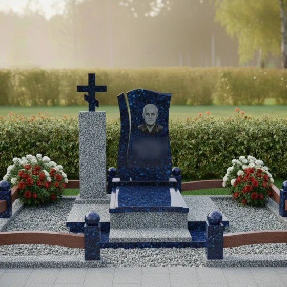Оформление: Плавные изгибы этого монумента идеально подходят для гравировки портрета и данных усопшего. Рекомендуем размещать портрет в верхней части вертикальной плиты, где он будет гармонично вписан в общую композицию, а фамилию, имя и отчество — под ним, используя классические шрифты, которые подчеркнут торжественность момента. Такая компоновка создает визуальный центр, притягивающий взгляд, и позволяет сохранить баланс между изображением и текстом, придавая монументу завершенный и благородный вид. Глубокая гравировка на полированной поверхности черного гранита будет выглядеть особенно выразительно, создавая игру света и тени, которая придаст портрету объем и живость.