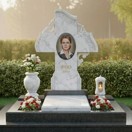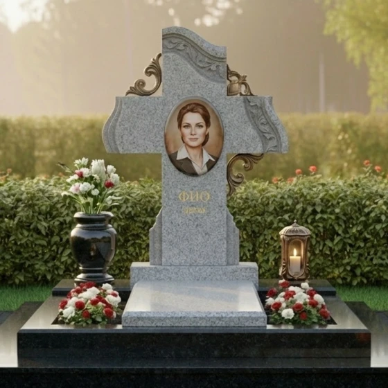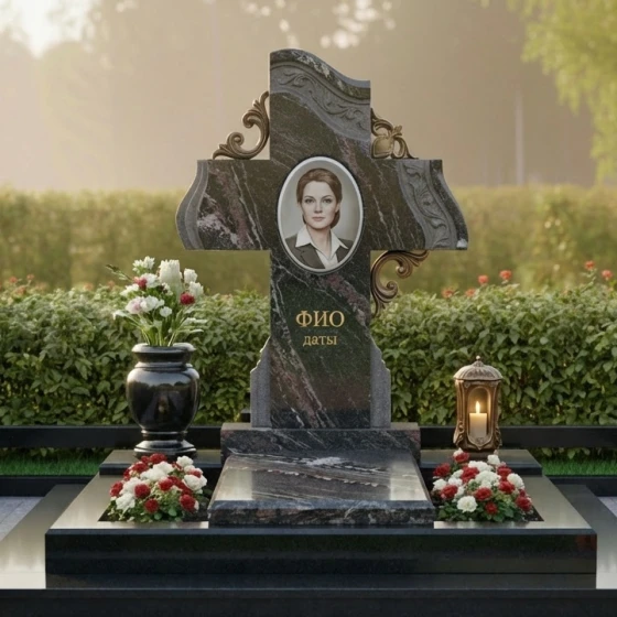 Оформление: Для данной формы памятной плиты мы рекомендуем выполнять портрет методом гравировки, который благодаря глубокой полировке камня, особенно эффектно передаст черты лица, создавая ощущение присутствия и вечности. Имя и даты жизни будут выглядеть наиболее выразительно при использовании классического шрифта, который подчеркнет торжественность и значимость момента. Размещение портрета в центральной части памятной плиты, непосредственно под крестом, создаст гармоничную композицию, которая будет притягивать взгляд и вызывать глубокие чувства.