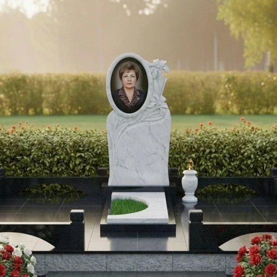 Кому подойдет: Данная модель станет идеальным выбором для оформления женского захоронения — матери, супруги, сестры или дочери. Изящество цветочных линий, мягкие изгибы стелы и общая утонченность композиции подчеркивают женственность и ту нежность, которую покойная дарила окружающим. Это выбор тех, кто хочет видеть на месте упокоения не просто холодный камень, а воплощение красоты, любви и вечной благодарности в надежном и долговечном исполнении.