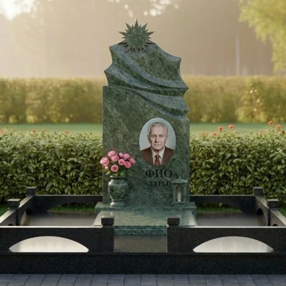 Уникальная форма стелы ПН 455 с ее динамичными изгибами идеально подходит для размещения портрета ушедшего человека, выполненного методом гравировки. Центральная, полированная часть стелы предоставляет достаточно пространства для качественного, детализированного изображения, которое будет контрастировать с рельефными элементами. Для этой формы особенно гармонично будет смотреться портрет в классическом стиле, подчеркивающий достоинство и мудрость человека. ФИО и даты жизни, выгравированные под портретом, будут легко читаемы благодаря гладкой поверхности и четкости линий, создаваемых лазерной гравировкой. Возможно использование золотого или серебряного покрытия для букв, что добавит элегантности и подчеркнет значимость каждого слова, увековеченного в камне.