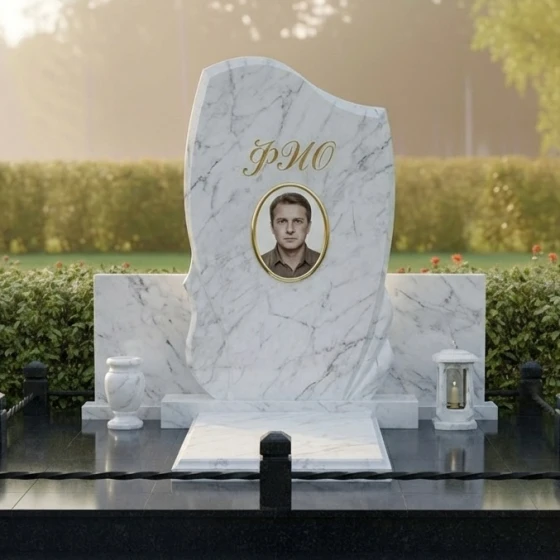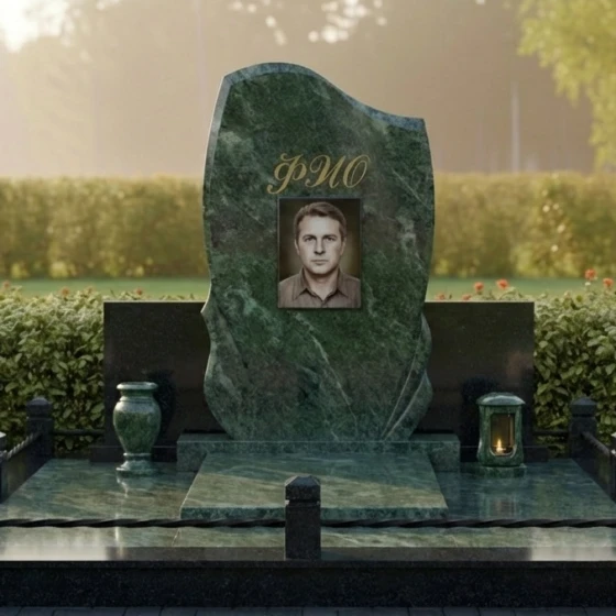 Кому подойдет: Данная модель станет идеальным выбором для тех, кто ищет баланс между классической монументальностью и современным дизайном. Благодаря своей универсальной, но выразительной форме, ансамбль подходит для оформления как мужских, так и женских захоронений. Плавные изгибы стелы и наличие лампады делают его особенно уместным для создания атмосферы духовного тепла и светлой печали. Это решение для семей, которые ценят архитектурную законченность и хотят избавить себя от хлопот по постоянному благоустройству территории, выбрав надежность и премиальную эстетику на века.