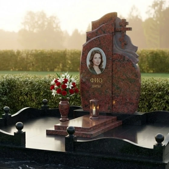 Кому подойдет: Эта модель является универсальным и в то же время статусным решением. Благодаря своей гармоничной геометрии и наличию канонического креста, она идеально подходит для оформления православного захоронения. Она станет достойным выбором как для мужчины, так и для женщины, подчеркивая глубокую привязанность семьи. Этот мемориальный комплекс выбирают те, кто стремится создать на участке атмосферу умиротворения, эстетической чистоты и долговечности, избавляя себя от хлопот по ежегодному обновлению территории.